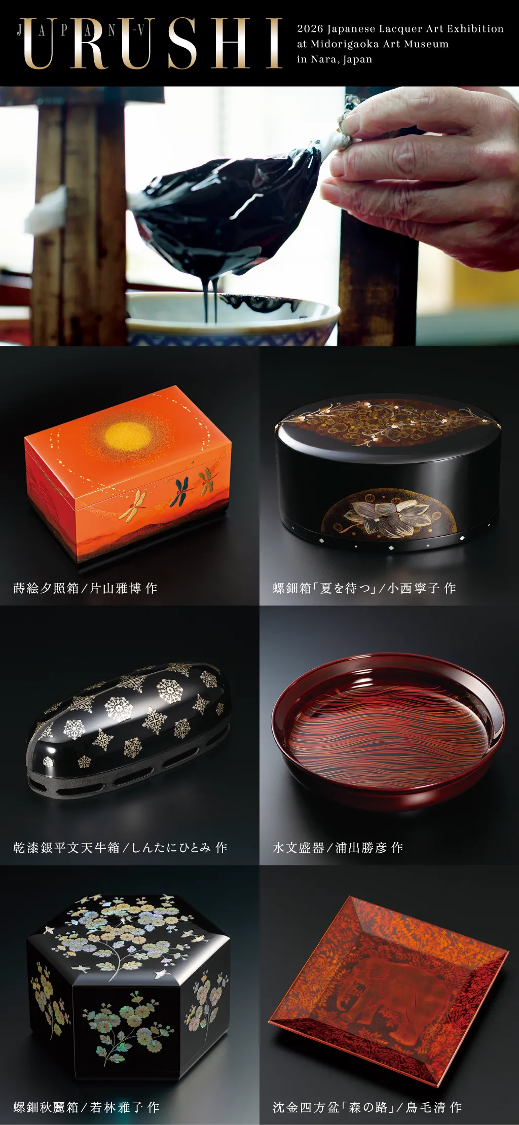 漆工芸の限りない可能性と極められた美の形を、日本の漆芸発祥の地・奈良にてぜひ、ご高覧ください。