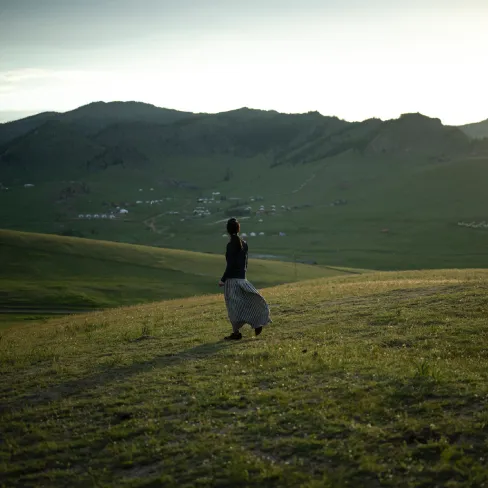 この度、満を持しての開催となりました『Moon Pavilion 光の詩を刻む 高橋朋子』。まさに高橋先生の「今」が凝縮された展覧会です。タイトルにある「Moon Pavilion」は高橋先生の代表的なシリーズの一つでもありますが、今回、その世界観のルーツに通じるモンゴルを訪れ、撮影を行いました。大草原で馬や牛と触れ合い、冴え冴えとした夜空を明るく照らす月を眺め、ゲルでの宿泊も体験された高橋先生。当美術館ではその様子を収めた映像も常時上映しておりますので、展示作品とともにぜひご鑑賞ください。